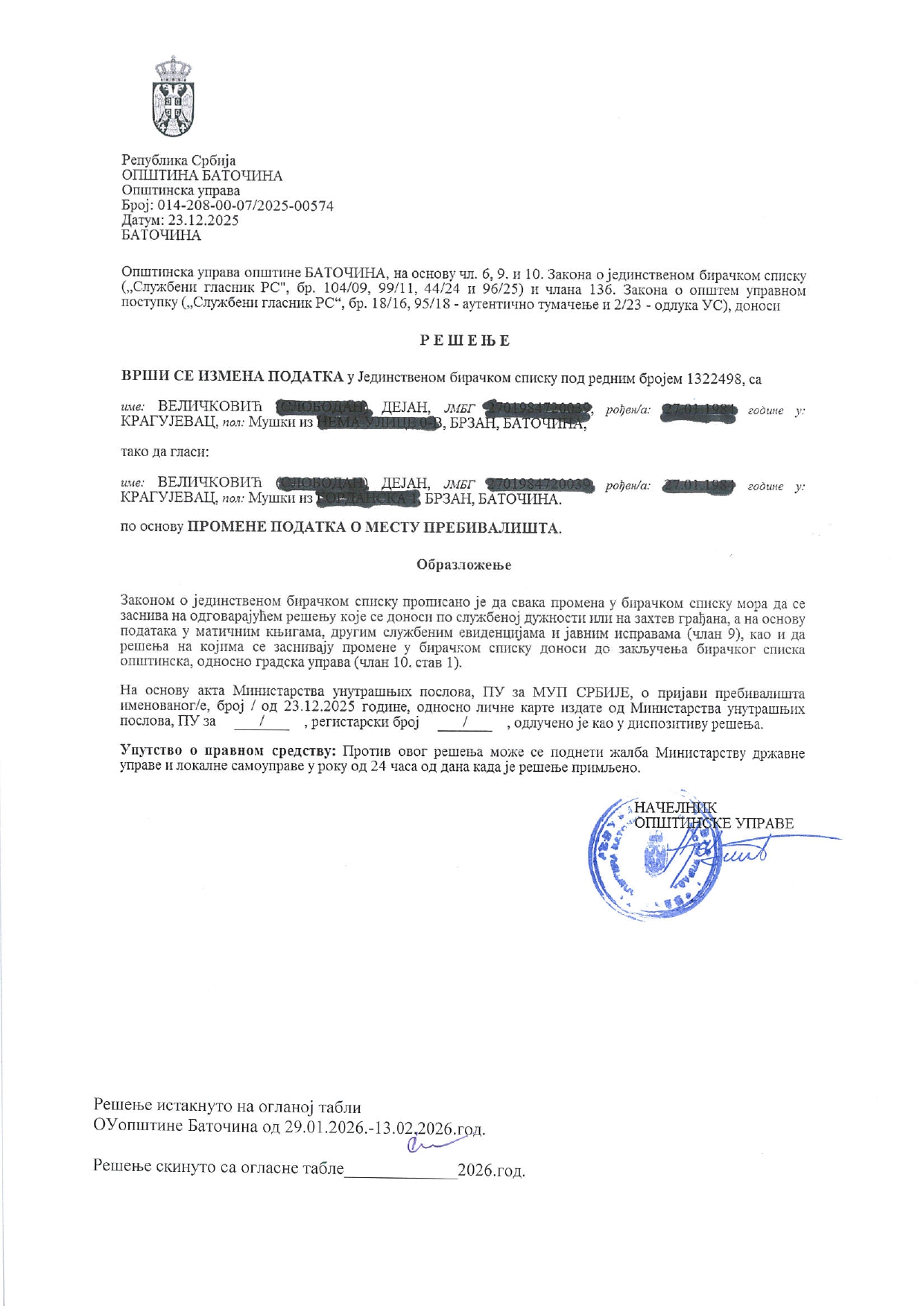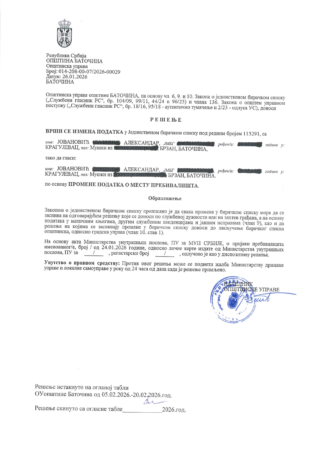 - Илија Јовановић, Баточина, 26.01.2026.год.