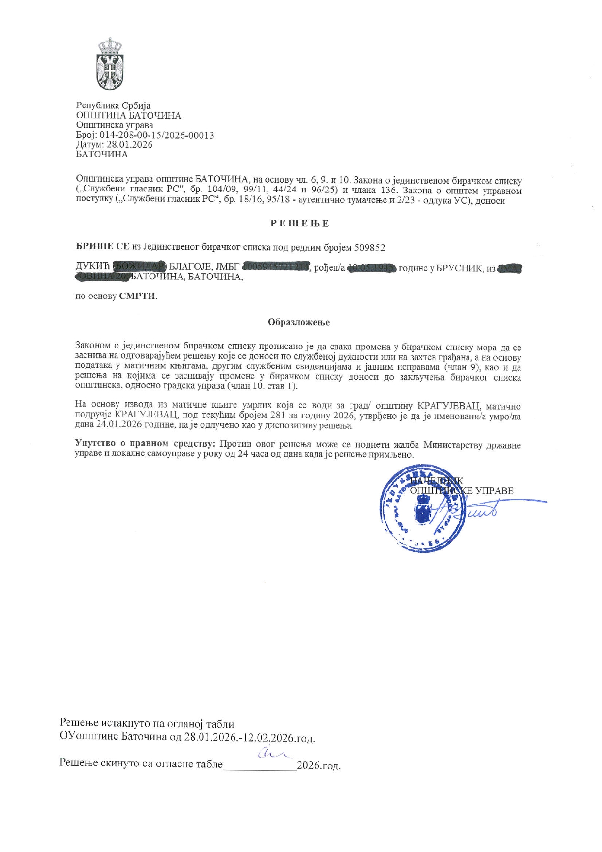 - Благоје Дукић, Баточина, 28.01.2026.год.
